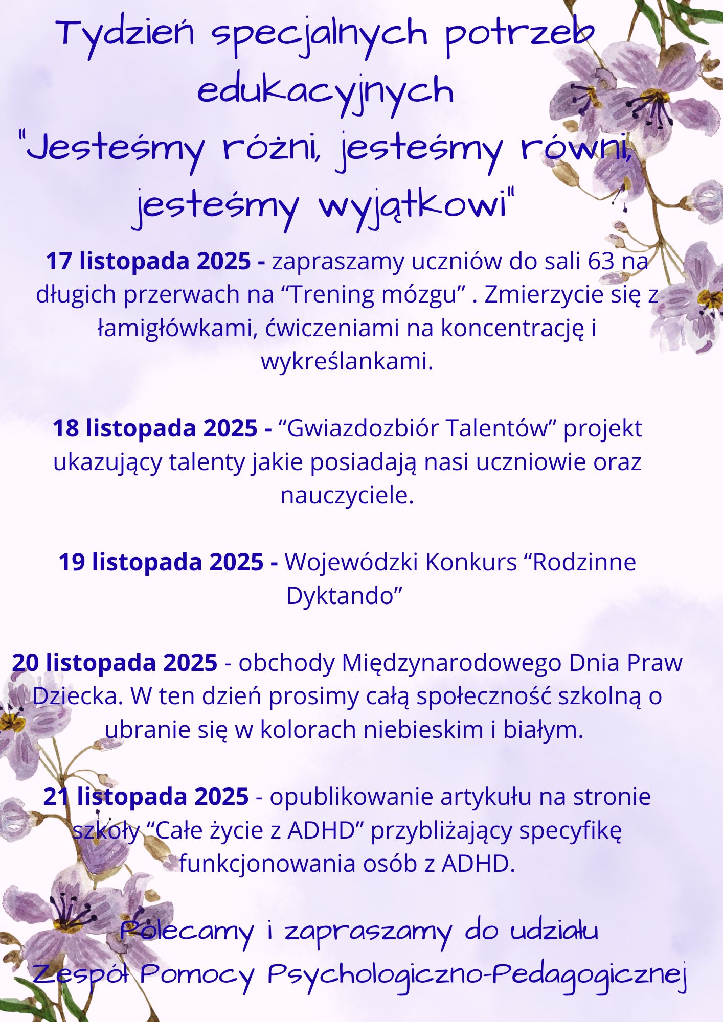 Tydzień świadomości specjalnych potrzeb edukacyjnych - ''Jesteśmy równi, jesteśmy różni, jesteśmy wyjątkowi''
